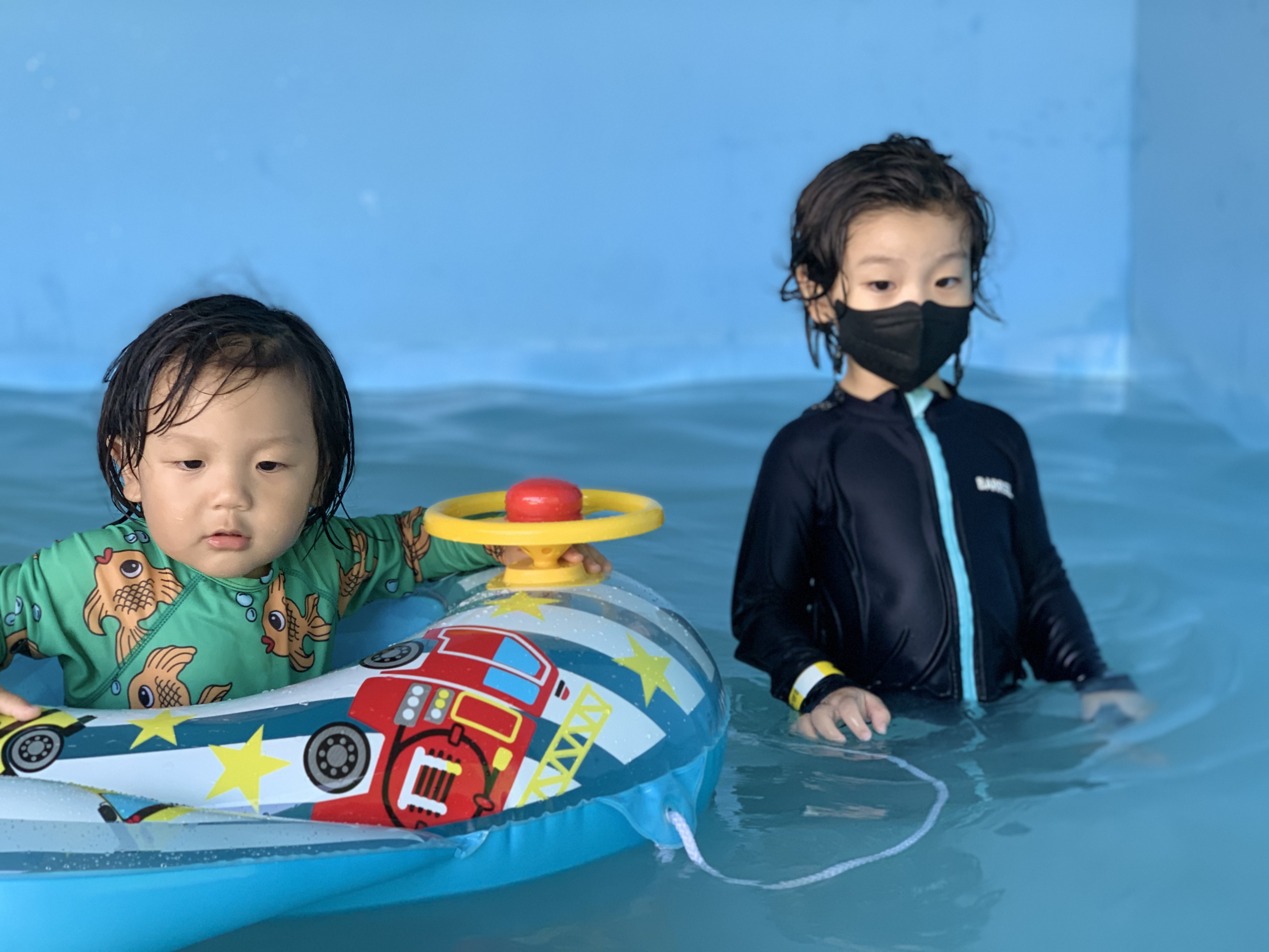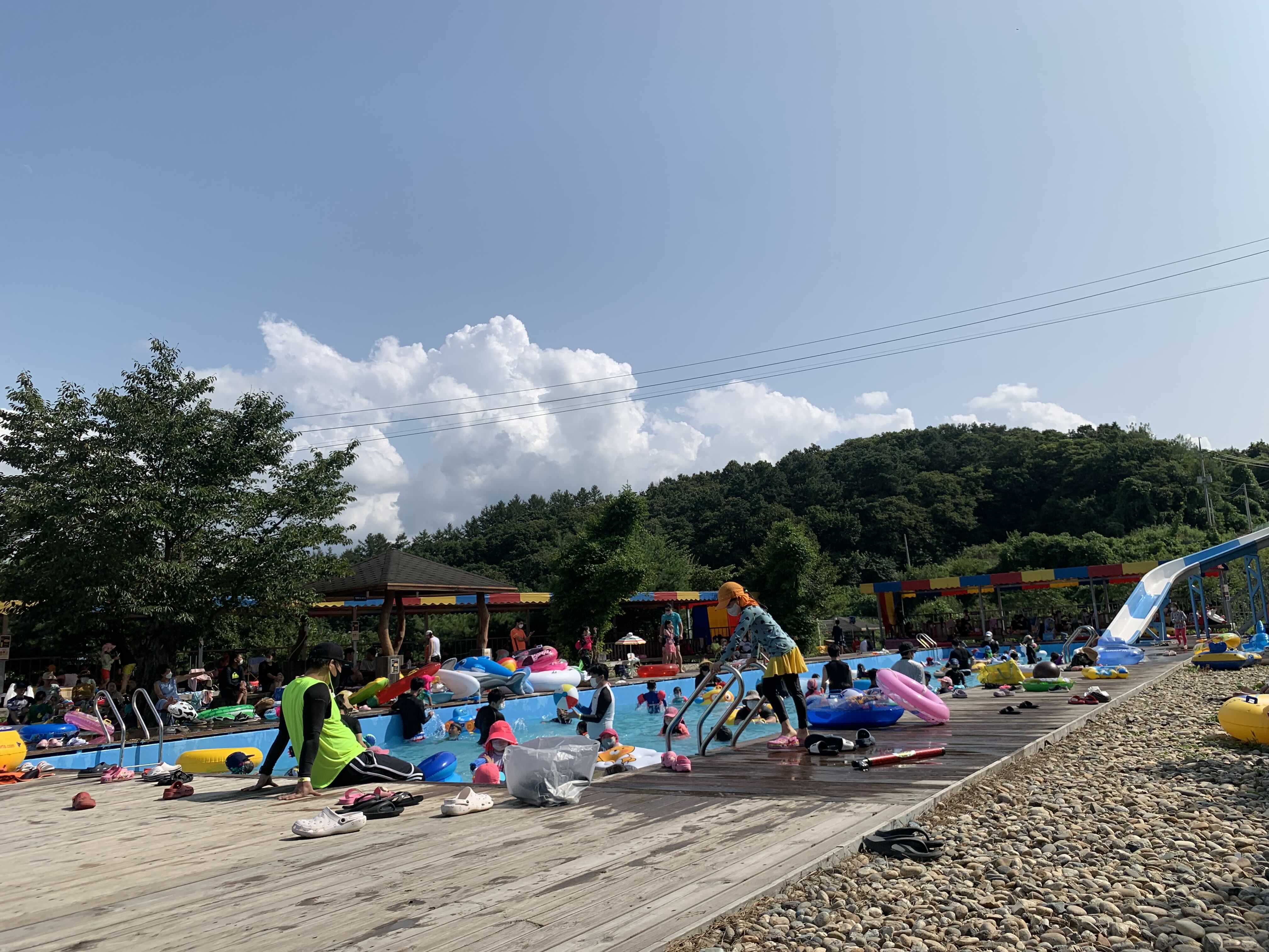 도착하자마자 수영복입고, 튜브가지고 수영장으로 갔습니다.
