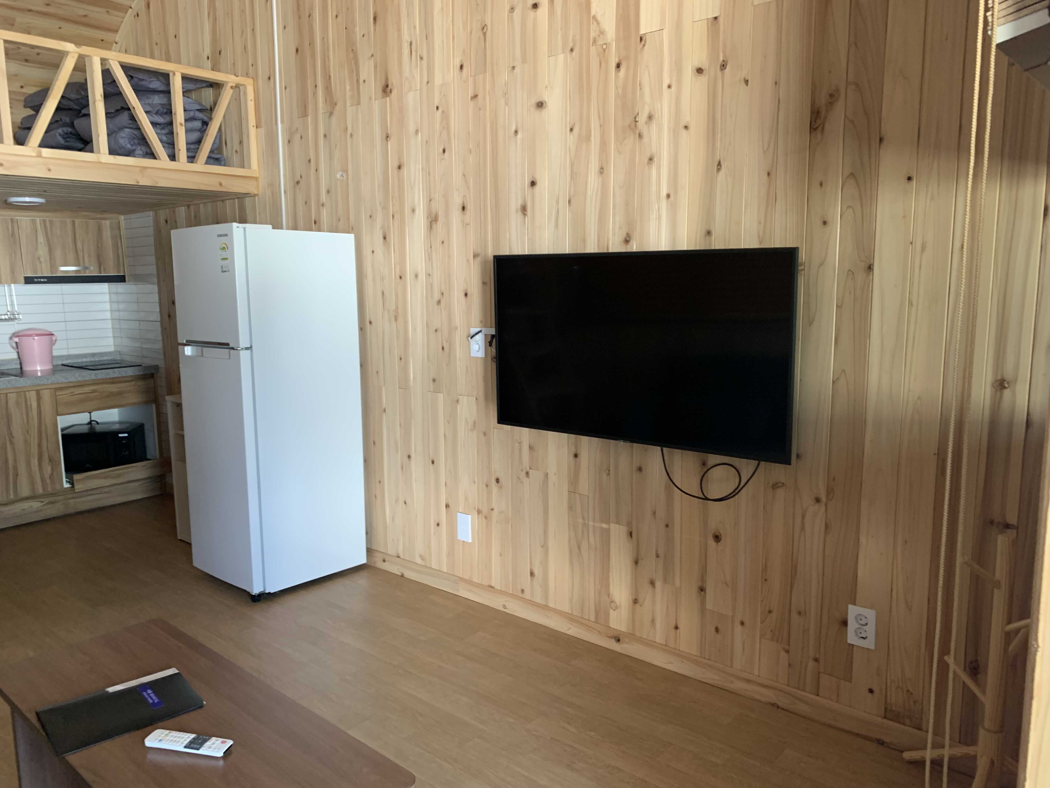 티비, 전자렌지, 냉장고, 휴지1개, 수건1개 있구요