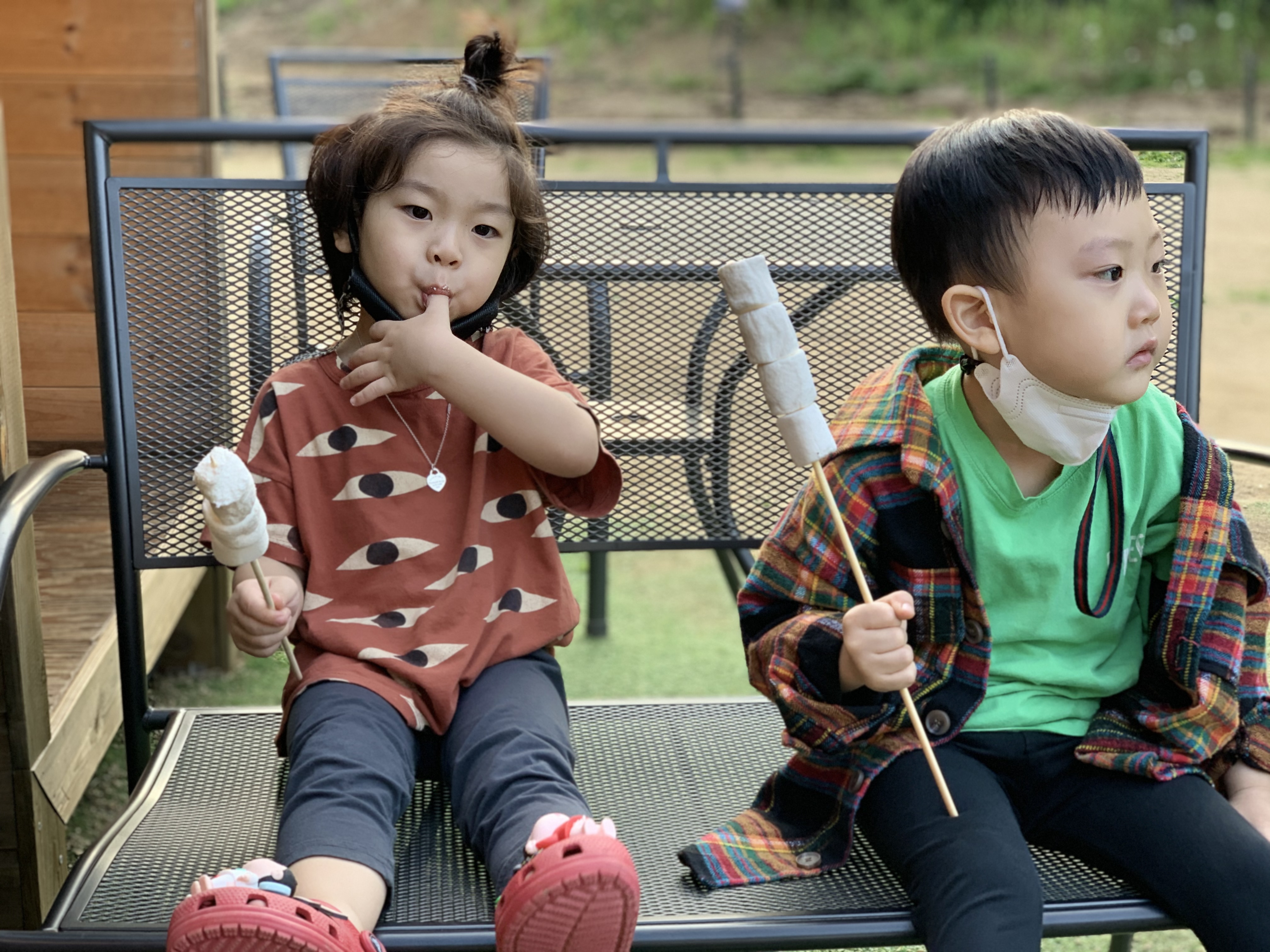 항상 준비담당, 둥이 애미의 돗자리에 앉아 과자도 먹고,