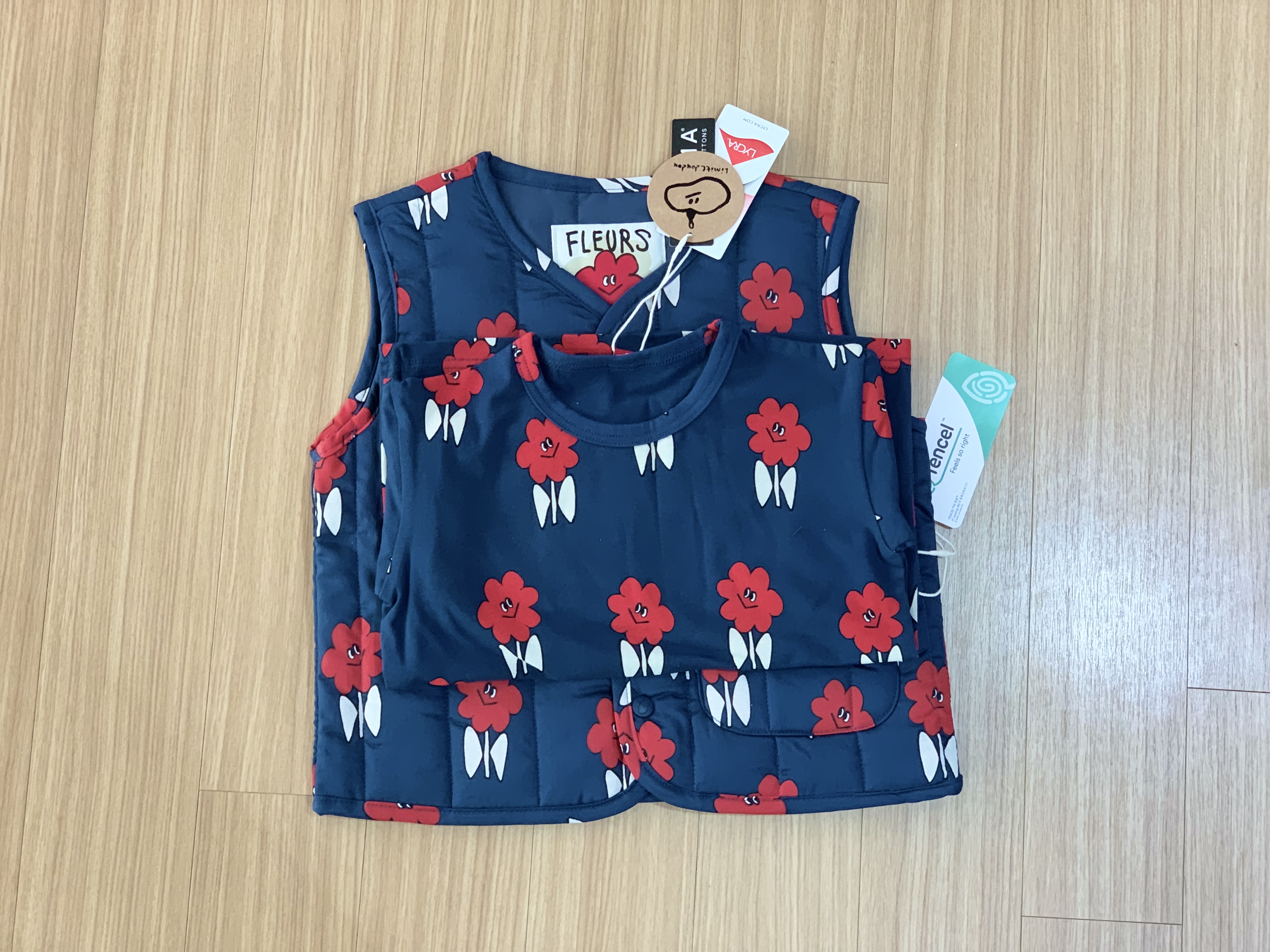 [리미떼두두] 리미떼두두, 플라워네이비 퀼팅 베스트 S 사이즈